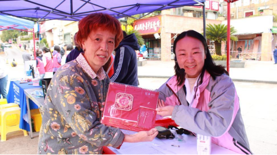 图4:为热心居民送上远志辅导工作室的台历纪念品
